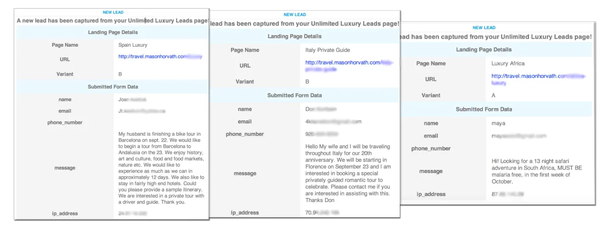 After investing over $225,000 and tens of thousands of hours in trial and error, we've successfully developed eight different ways to bring in luxury travel leads from the Internet. Leads consisting of 4- and 5-star clients currently looking for help planning their trip.